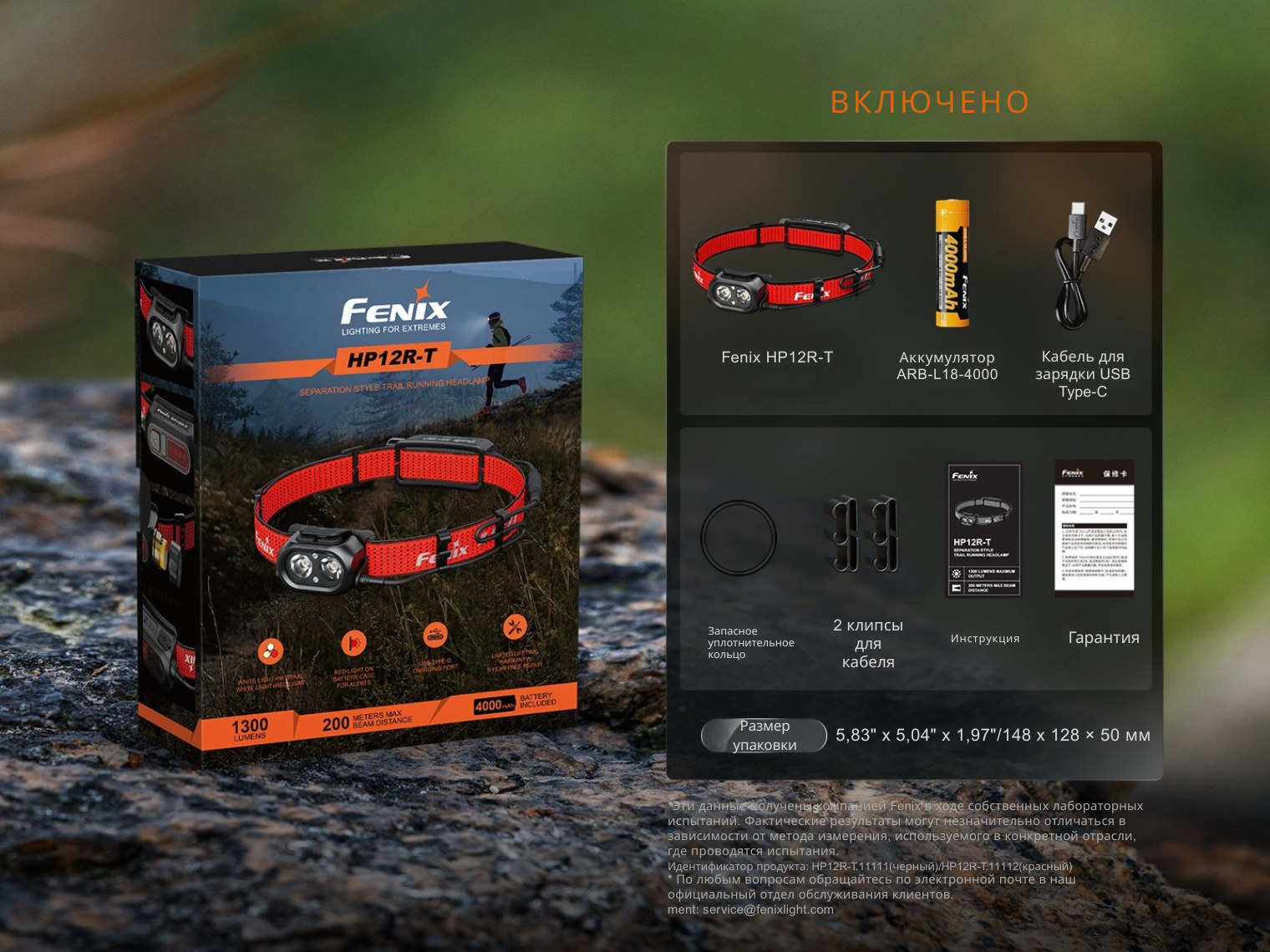 Комплектация | Fenix HP12R-T, аккумулятор ARB-L18-4000, зарядный кабель USB-C, запасное уплотнительное кольцо, 2 зажима для кабеля от батарейного блока, инструкция |