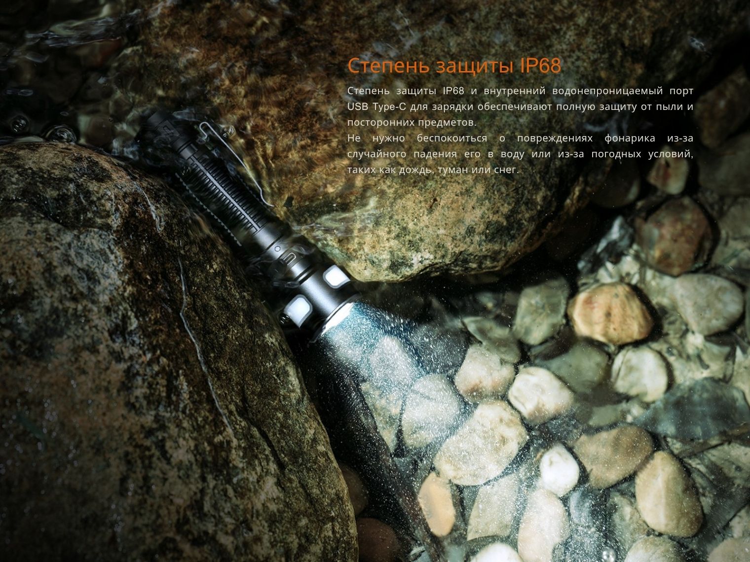 Ударопрочность Fenix LD35R достигает 1 м, а герметичность находится на самом высоком уровне — IP68.