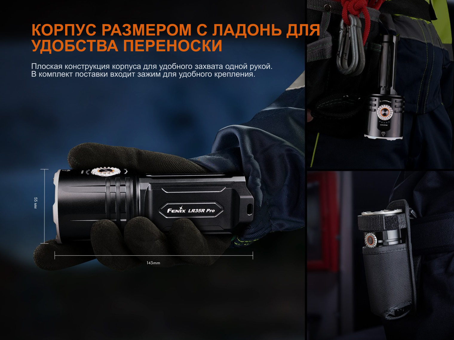 Fenix LR35R PRO — ручной фонарь с инновационным функционалом, нацеленным на универсальность в использовании и удобное управление.