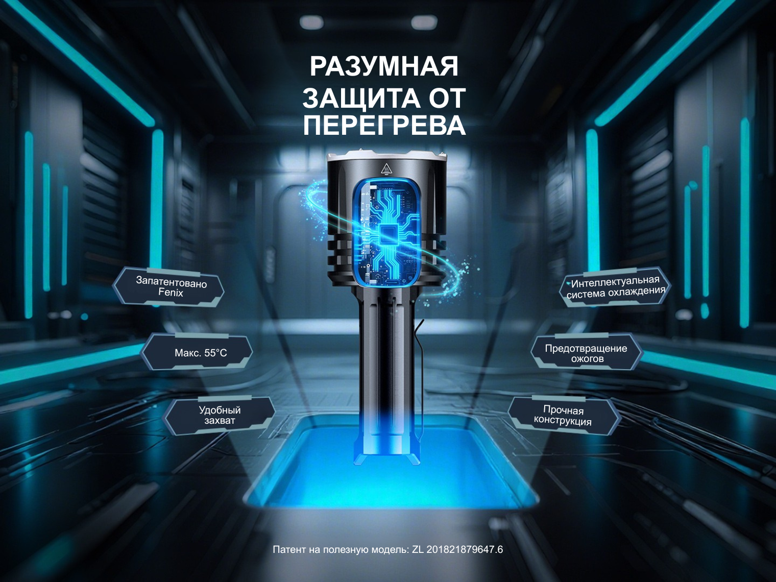 Корпус из авиационного алюминия с анодированной поверхностью устойчив к царапинам, механическим повреждениям, окислению. Плоская хвостовая часть адаптирована под комфортный захват без скольжения в ладони, а глубокие ребра в голове отводят тепло, накопленное во время длительной работы электроники на высокой мощности.