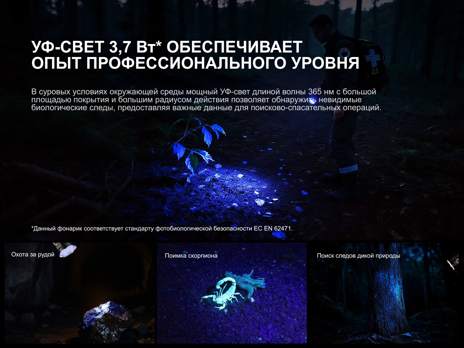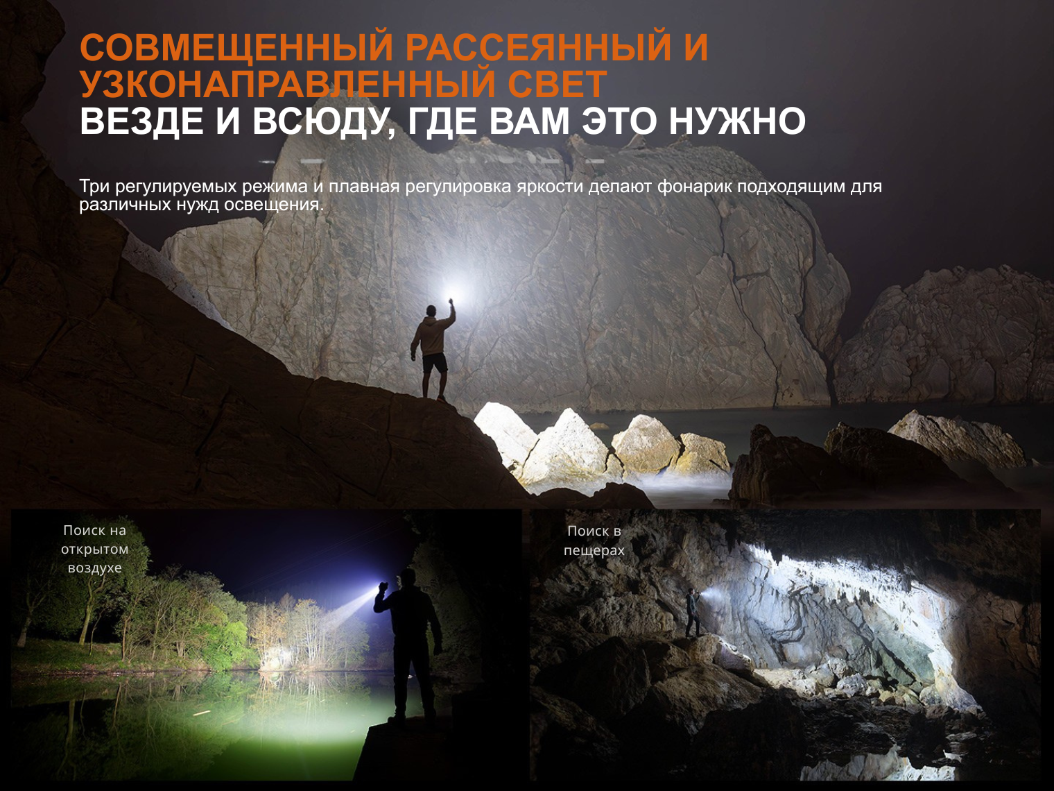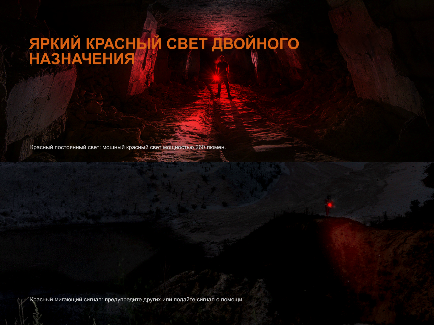 Обратите внимание! Время работы в режиме Высокий указано с учетом автоматического перехода на менее яркие режимы после срабатывания защиты от перегрева.