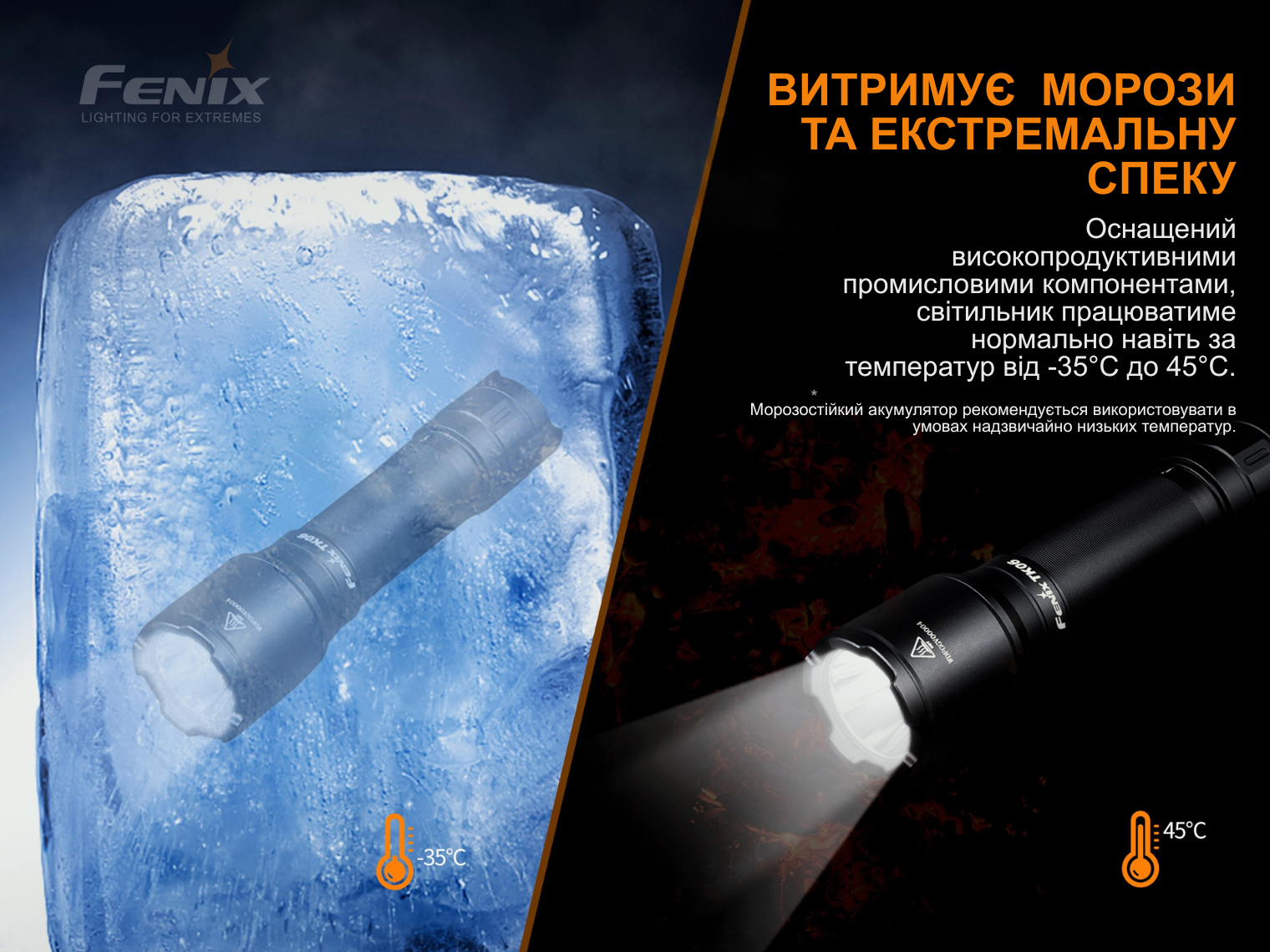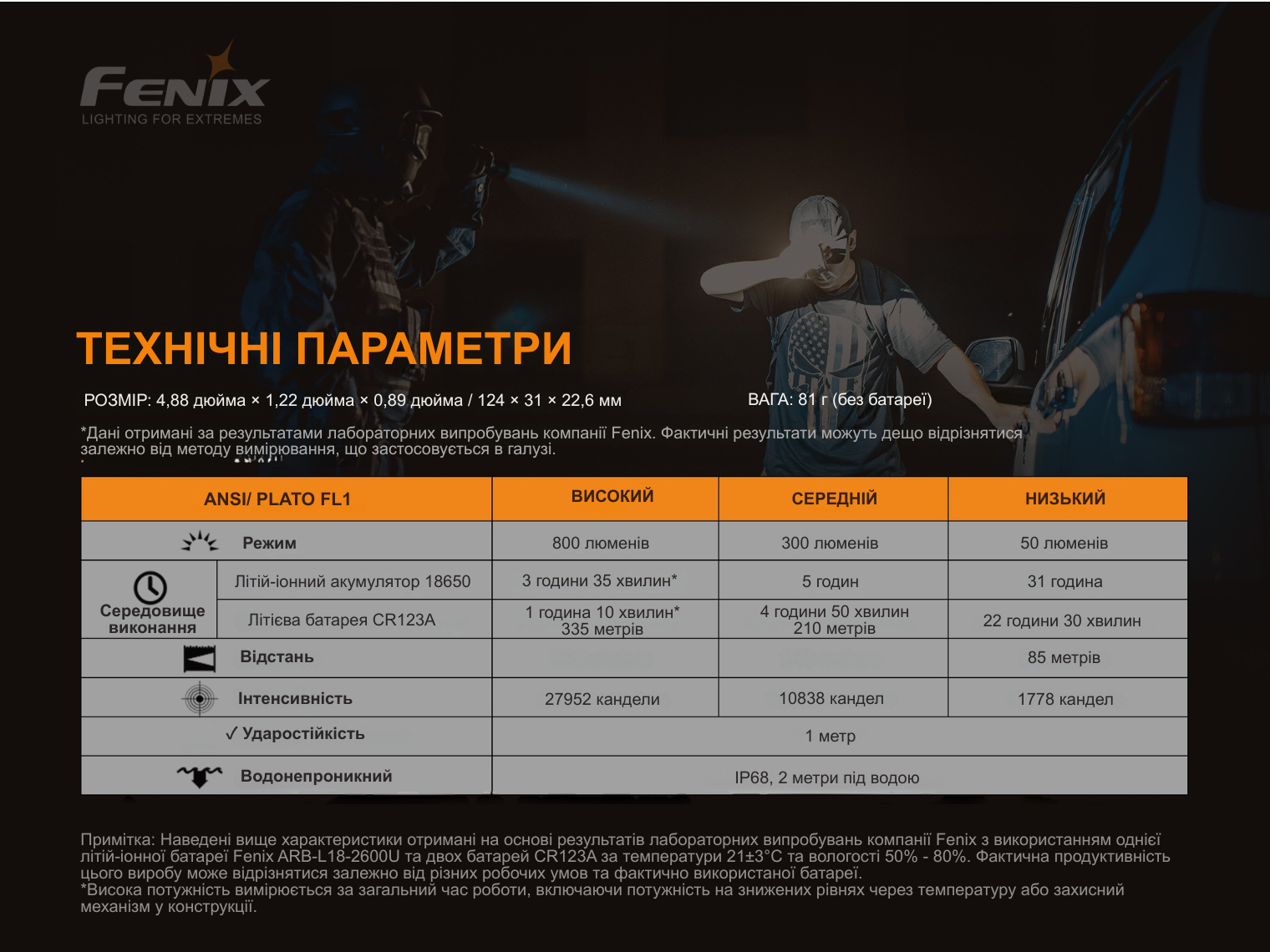 * Час світіння Fenix TK06 в максимальному режимі наведено сумарно. Брали до уваги зниження режиму внаслідок спрацьовування функції проти перегріву.