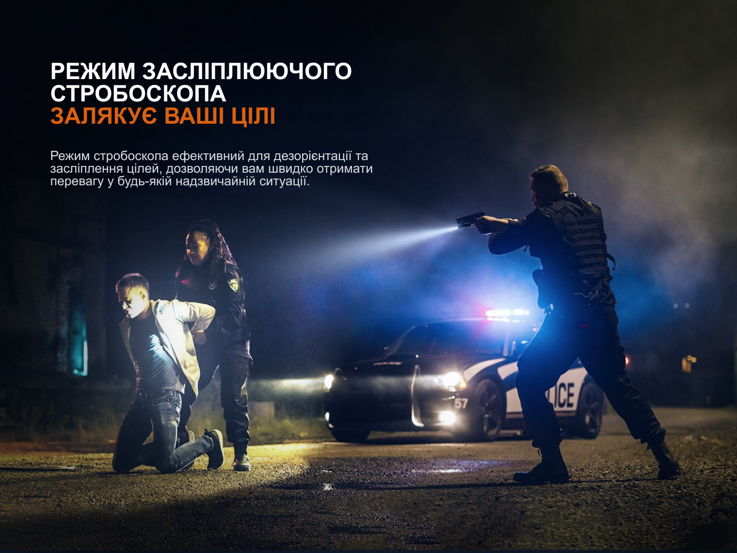 Як джерело світла використовується світлодіод Luminus SFT12R з колірною температурою ~6000K — це холодне біле світло з високою контрастністю, що робить підсвічування найдрібніших деталей гранично чітким. Максимальна яскравість променя сягає 700 люменів, а дальність — до 240 м.