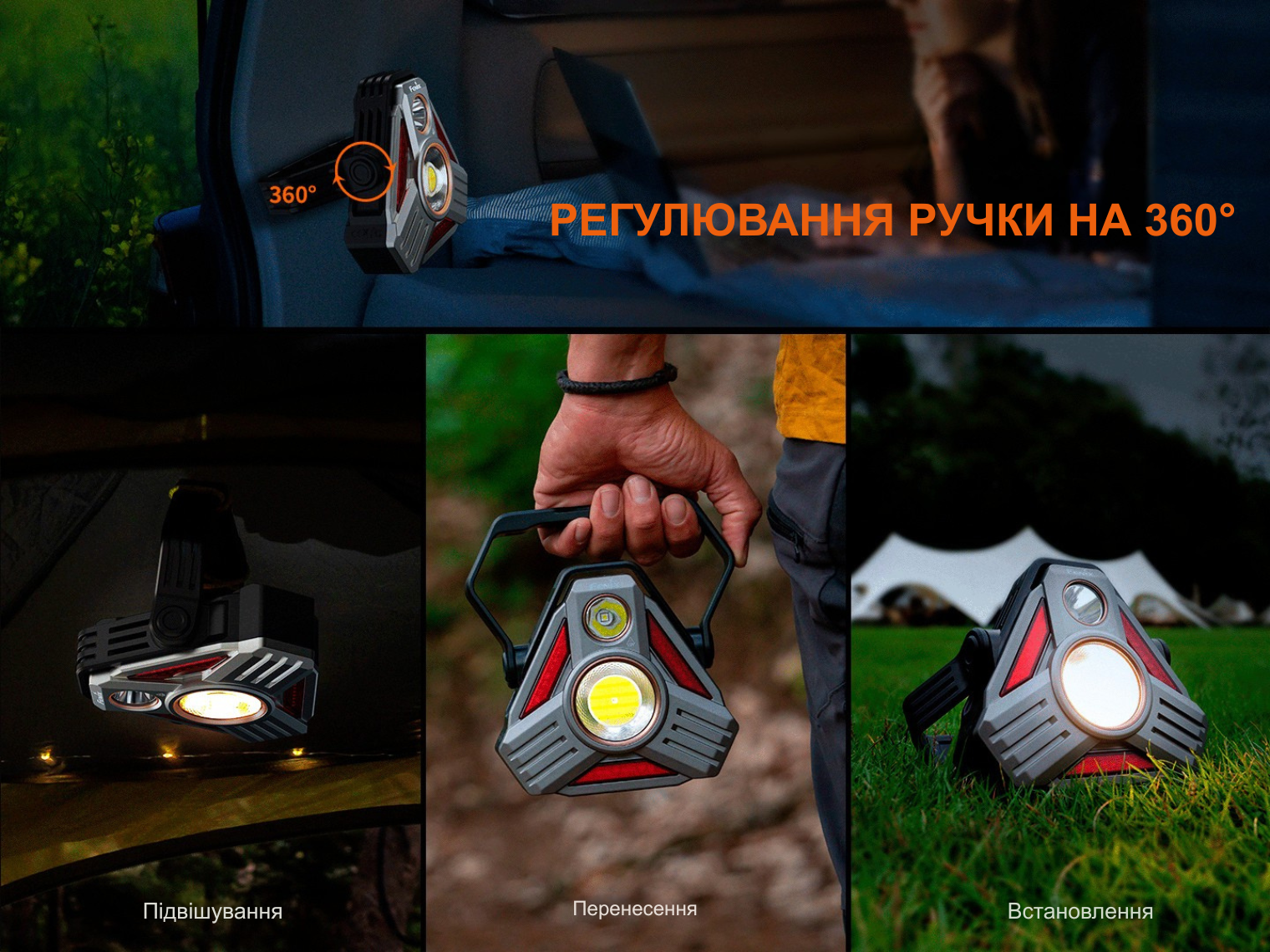 - кемпінговий багатофункціональний ліхтар Fenix CP50R з магнітним руківʼям та різьбовим з'єднанням;