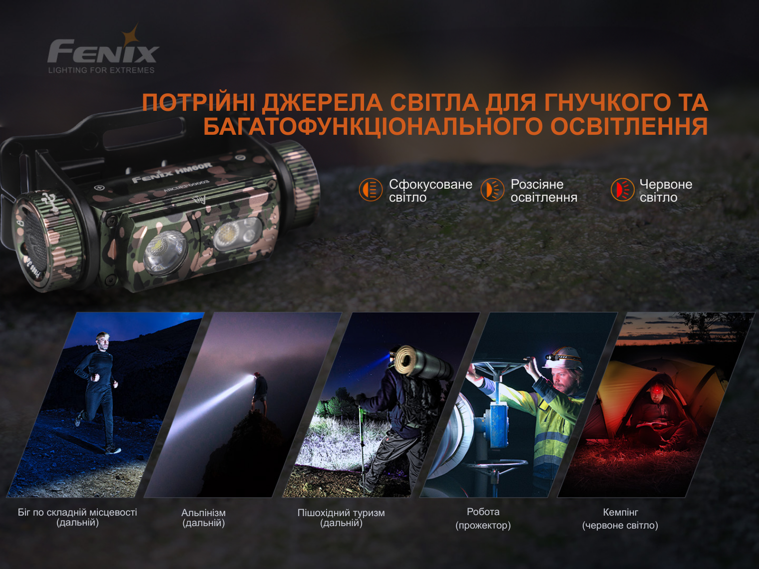 Опис ліхтаря налобного Fenix HM60R, камуфляж | Лімітована серія: