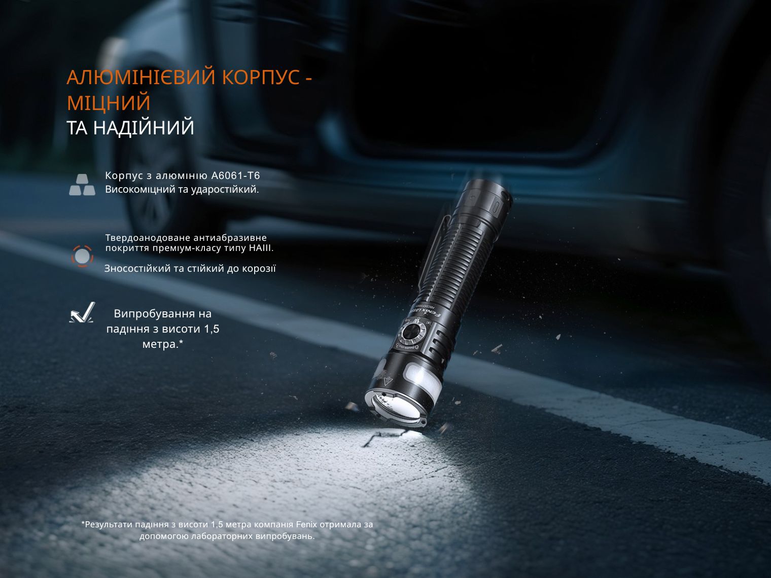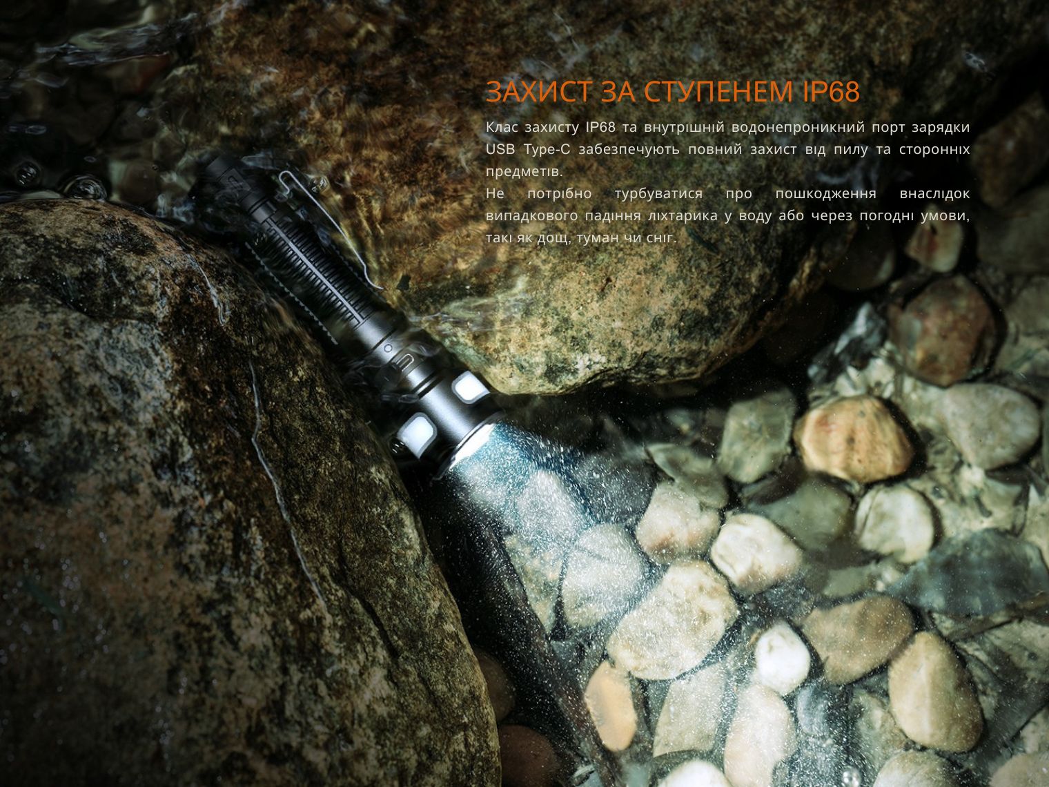 Удароміцність Fenix LD35R сягає 1 м, а герметичність знаходиться на найвищому рівні — IP68.