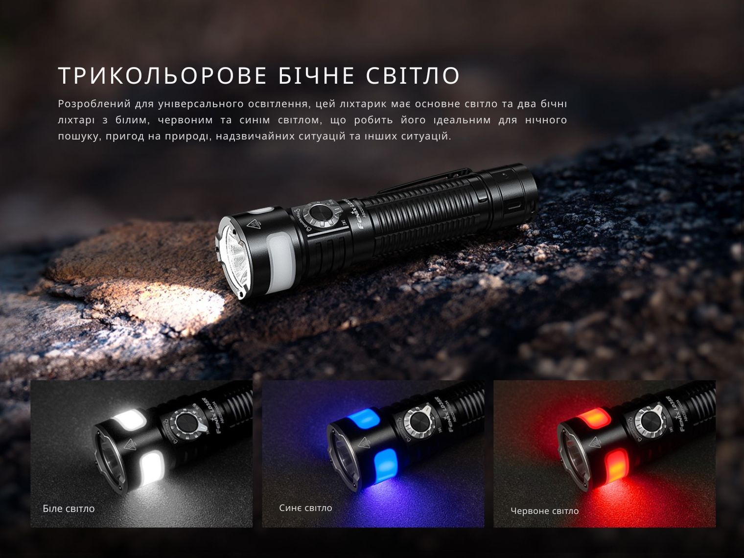 Багатофункціональний ліхтар Fenix LD35R випромінює світло у 3 відтінках (біле, червоне та синє), тому актуальний у різних умовах: під час активного відпочинку на природі, виконання службових або ремонтних робіт та в повсякденних ситуаціях.
