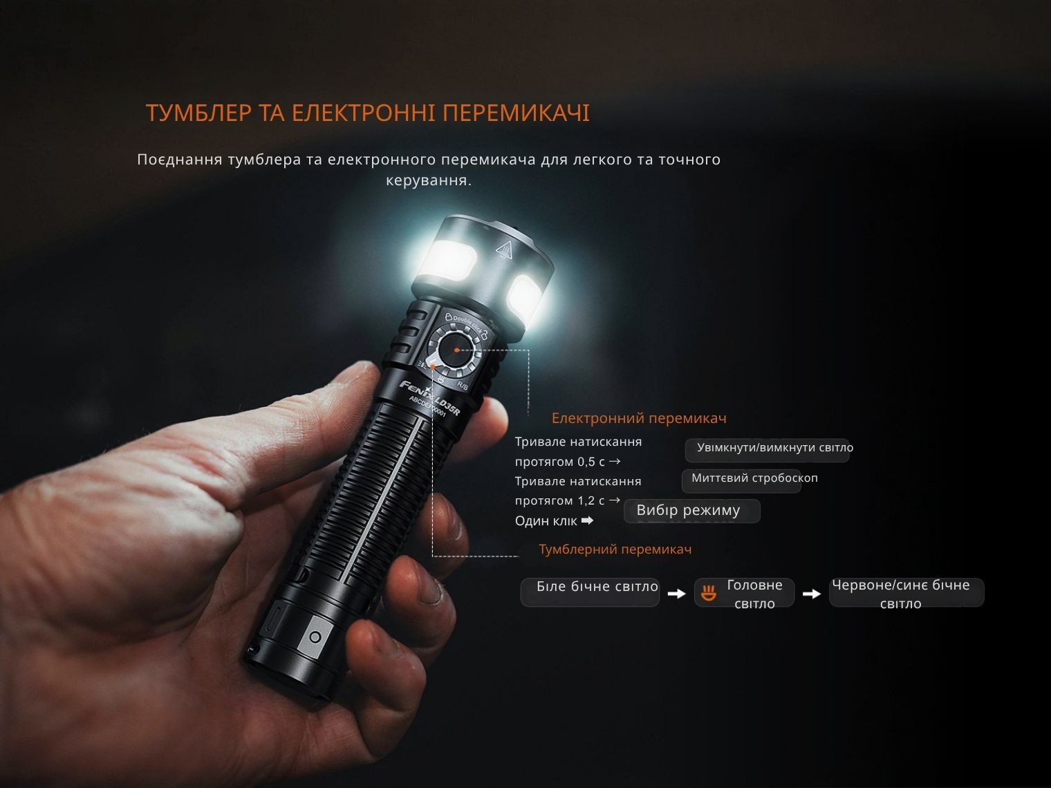 Опис ручного ліхтаря Fenix LD35R: