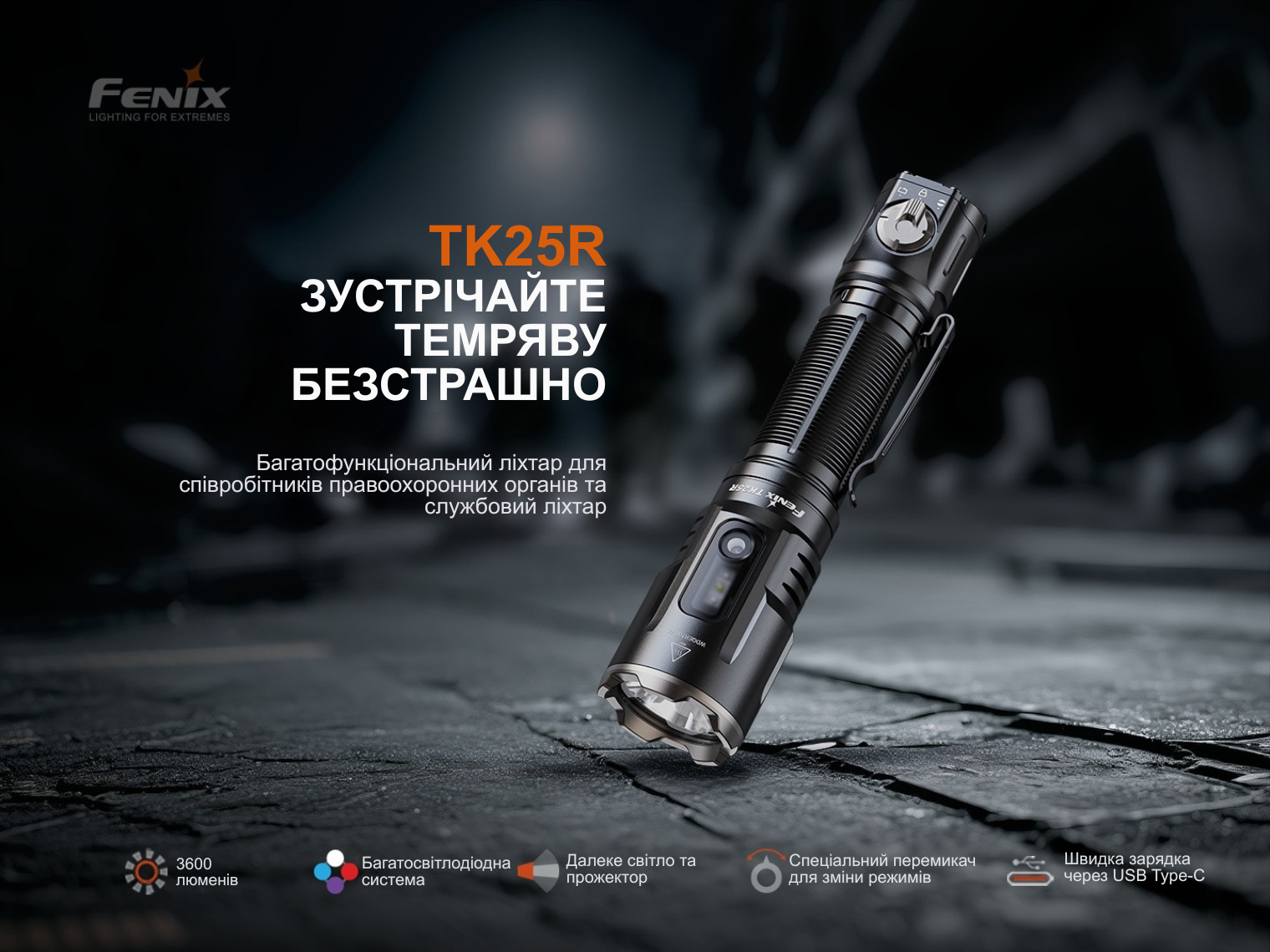 Опис тактичного ліхтаря Fenix TK25R: