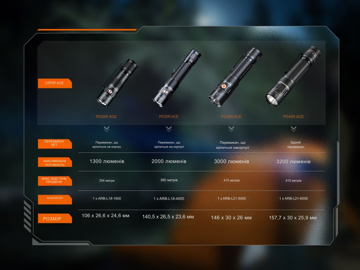 Опис тактичного ліхтаря Fenix PD26R ACE: