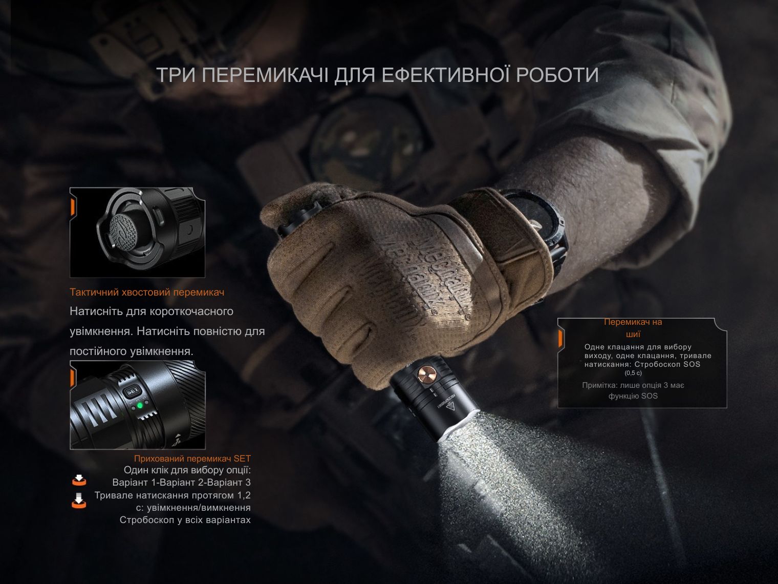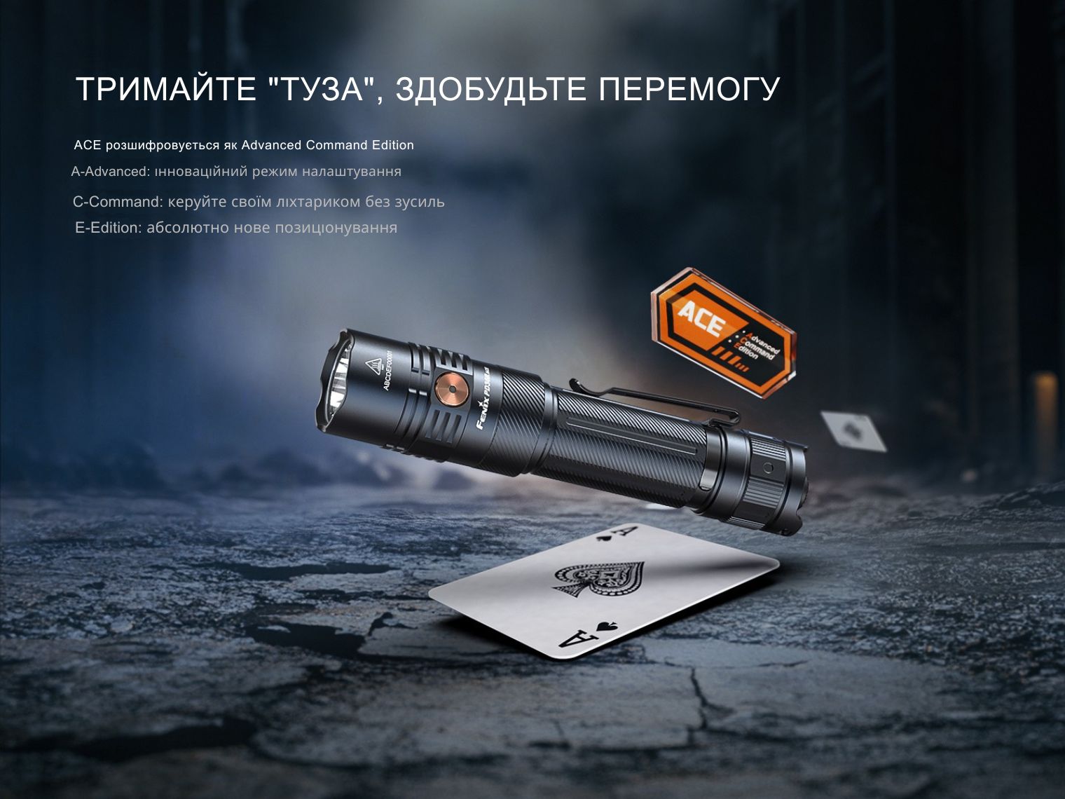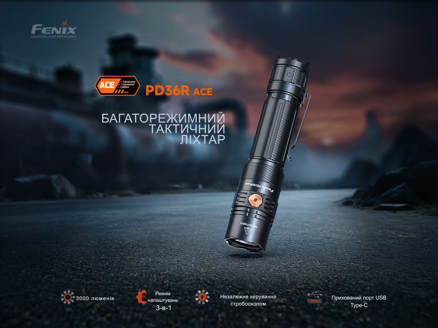 - тактичний ліхтар Fenix PD36R ACE з ексклюзивною кнопкою керування SET;