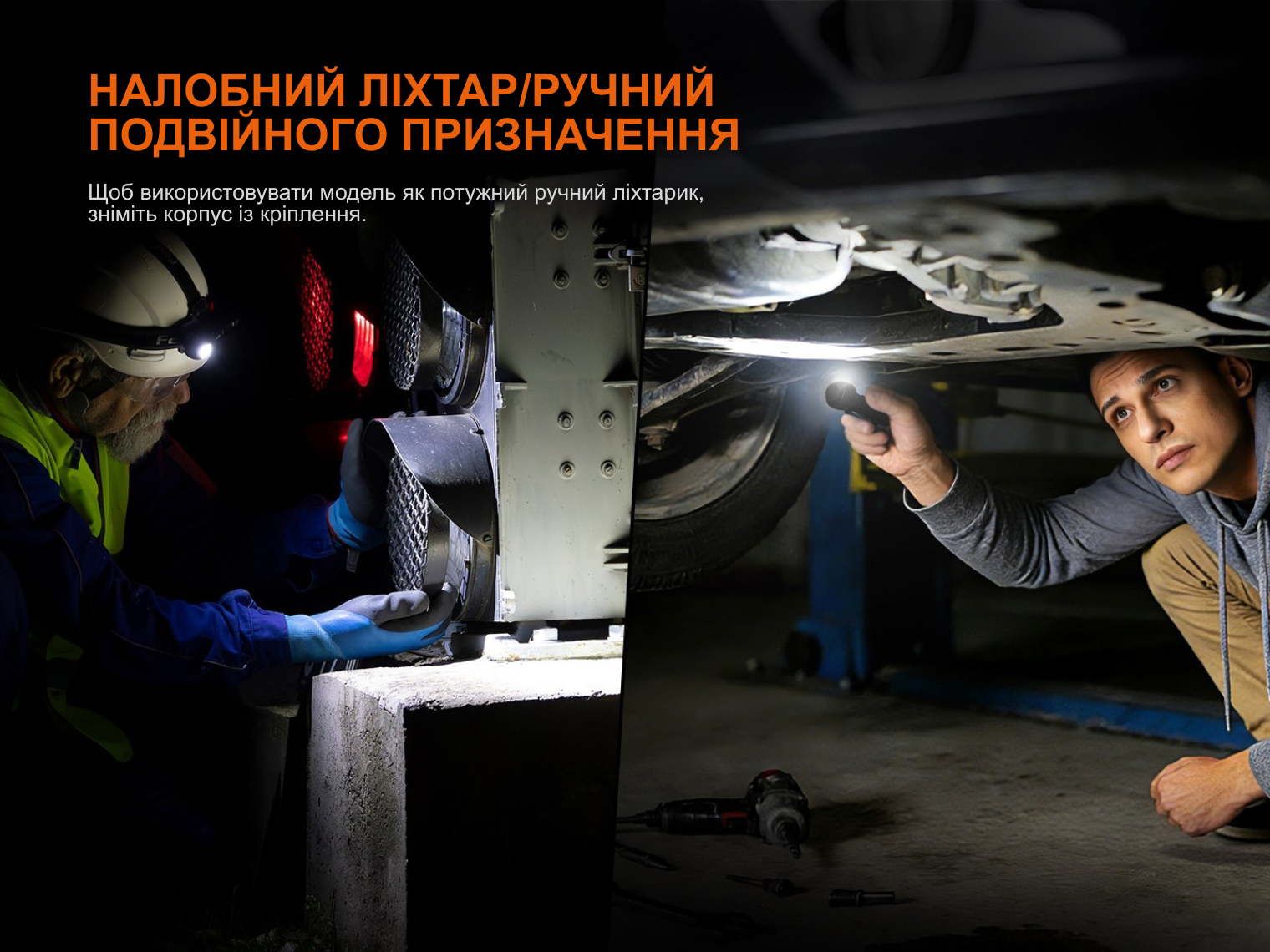 Fenix HM61R V3.0 — це універсальний освітлювальний пристрій, який завдяки знімному кріпленню та сталевій кліпсі трансформується з налобного ліхтаря в ручний або нагрудний.