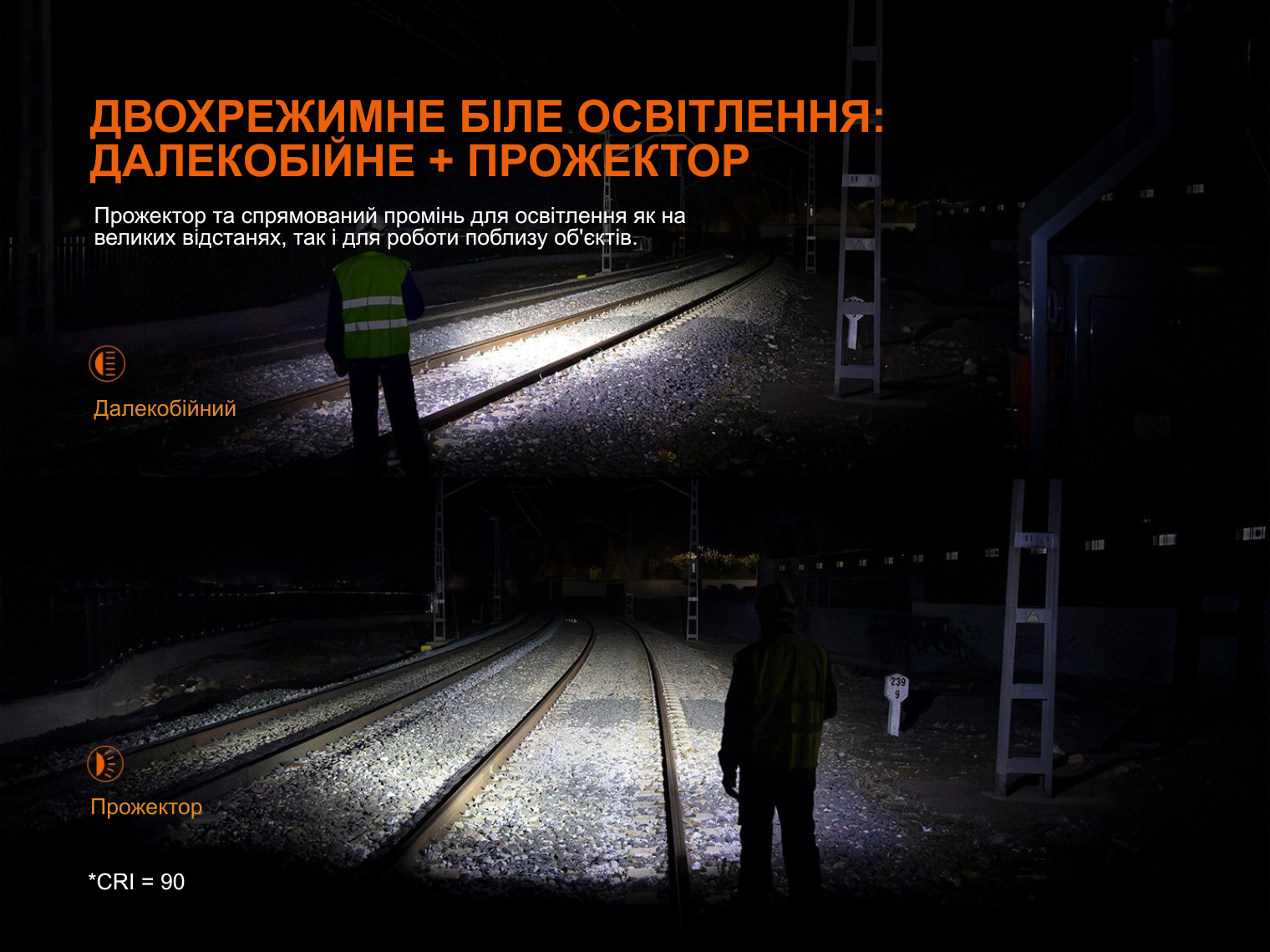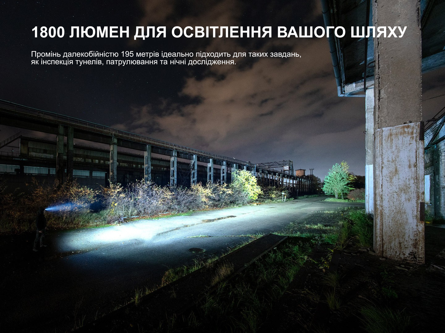 - Турбо: 1800 лм – 9540 кд – 2 год 42 хв – 195 м;