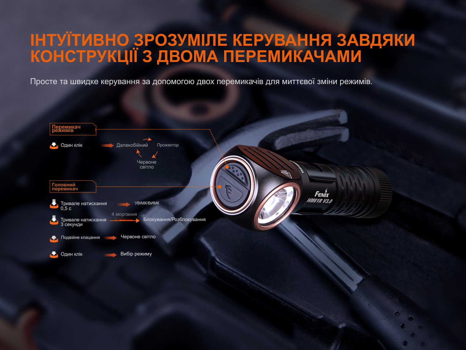 Опис мультиліхтар Fenix HM61R V3.0: